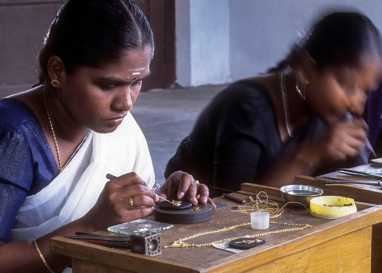 We provide on-the-job training in the jewellery field, fostering the inclusion of women into our workforce.